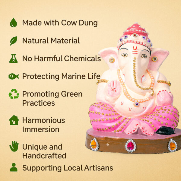 Gauriputra Ganpati idol, made from pure eco-friendly cow dung, embodies the blessings of Goddess Parvati’s beloved son, bringing harmony, prosperity, and joy to your home.