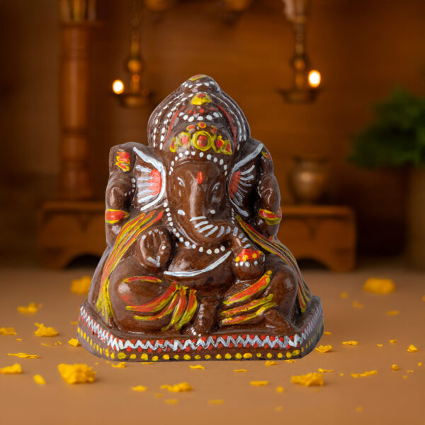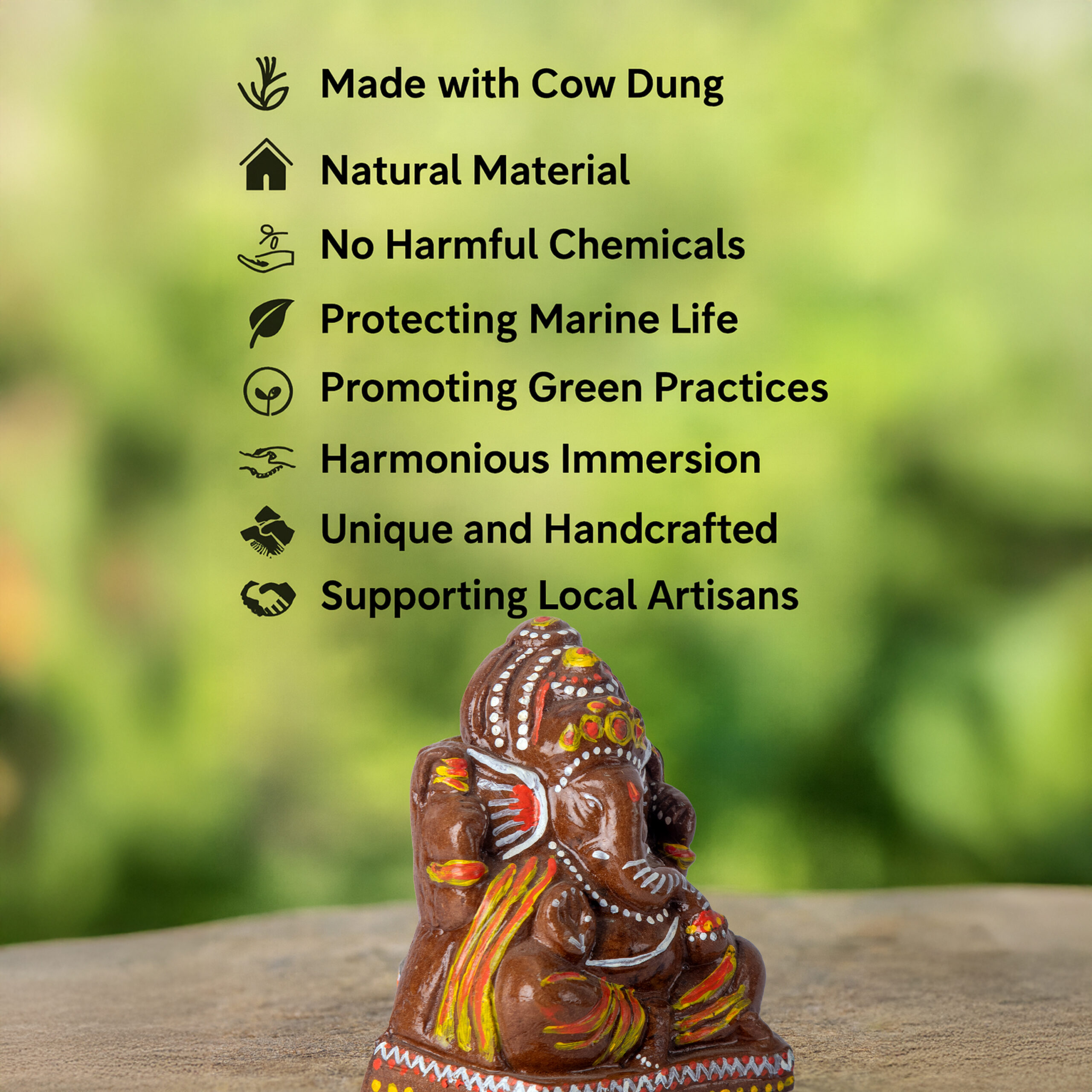 Siddhivinayaka Ganpati idol made from pure cow dung, symbolizing the granter of wishes and remover of obstacles. A sacred and eco-friendly choice for a blessed celebration.